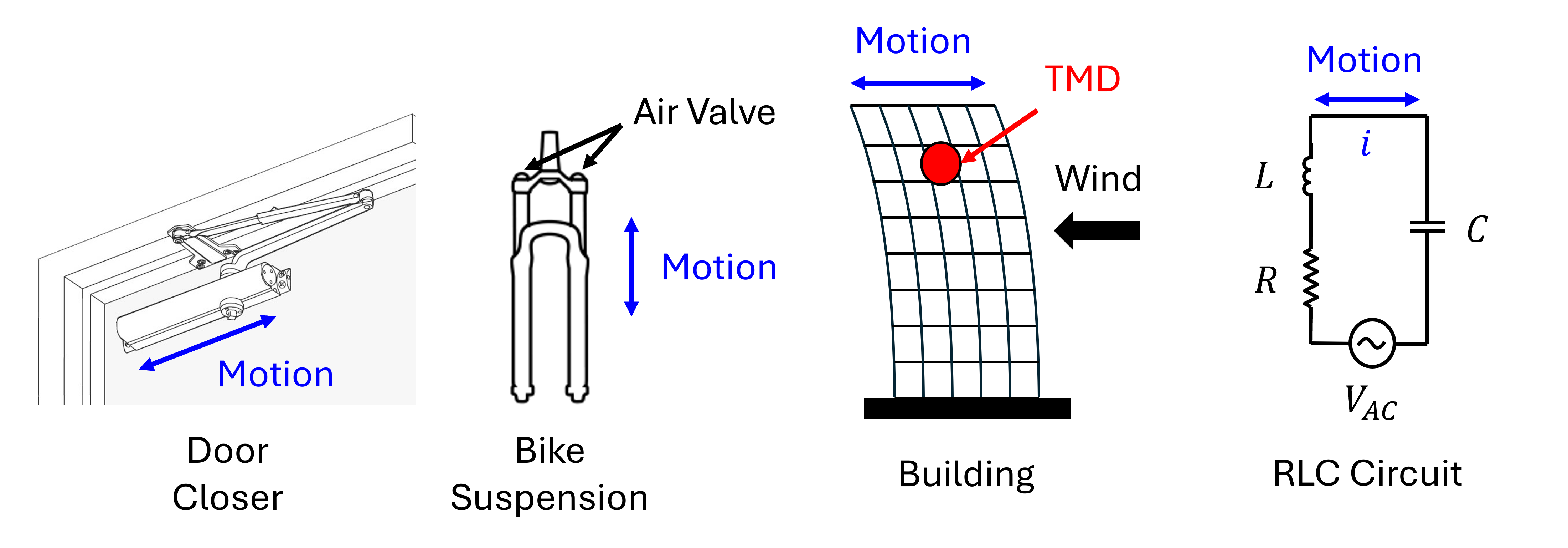 | Example | Motion | Mass | Spring | Damper | Force |