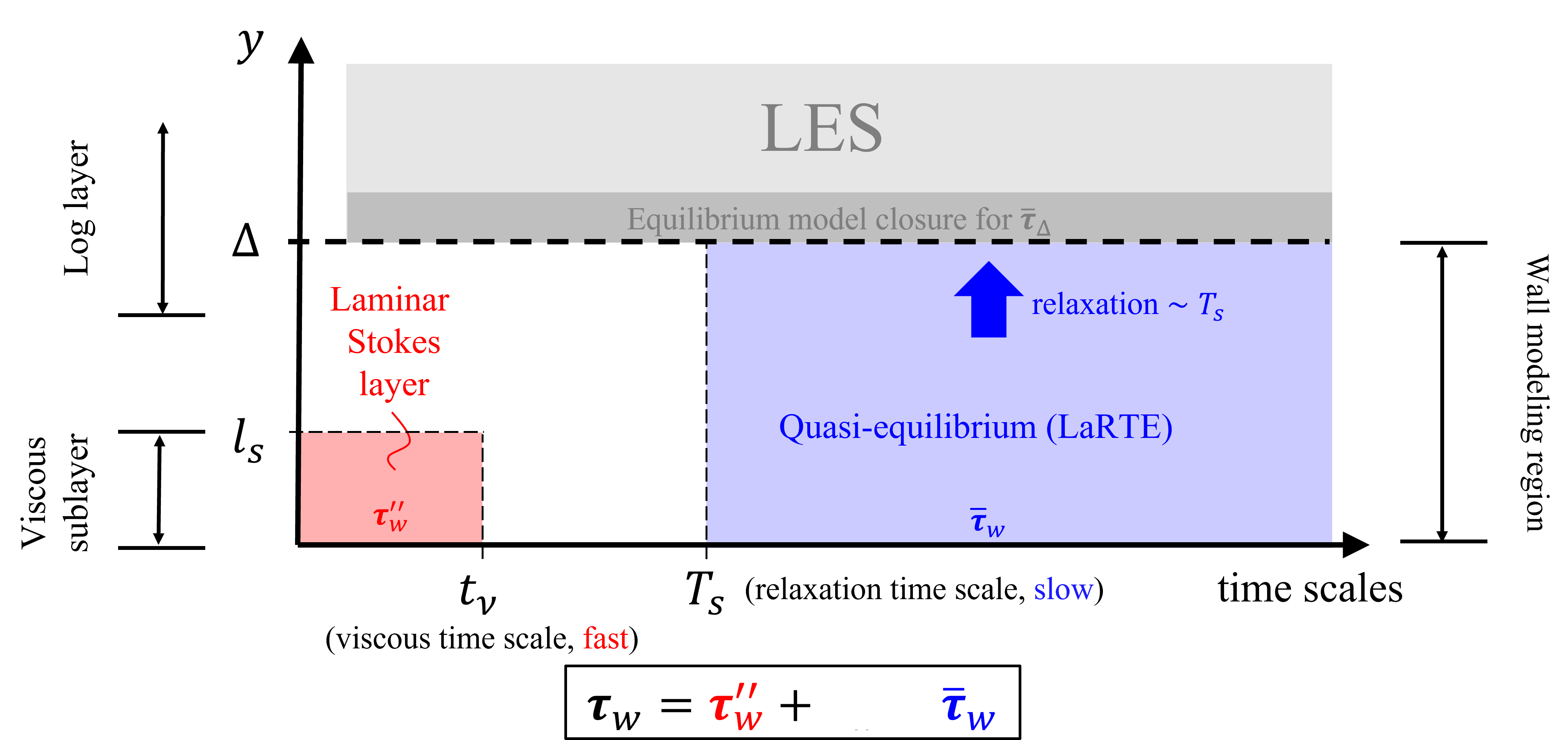 - Laminar Non-equilibrium (lamNEQ) Model: fast dynamics occuring inside the laminar viscous sublayer with dynamics faster than the viscous time scale, t_\nu